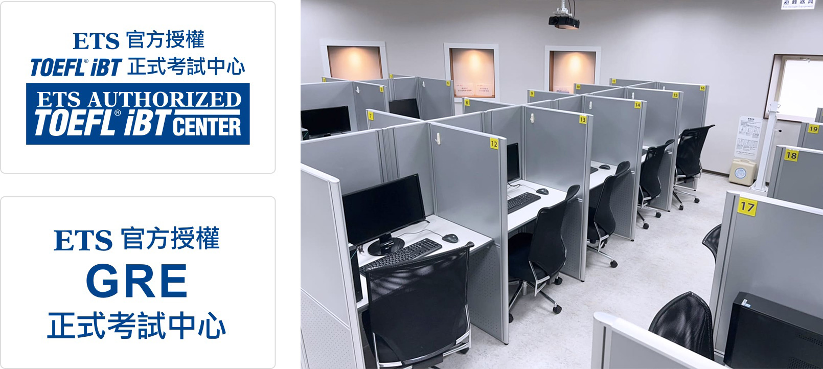 菁英國際同時也是美國ETS®官方授權成為「TOEFL iBT」和「GRE」正式考場 (考場編號:STN12283A),學員可享「原場考照」之福利,因此本中心提供TOEFL iBT托福原場模擬考,